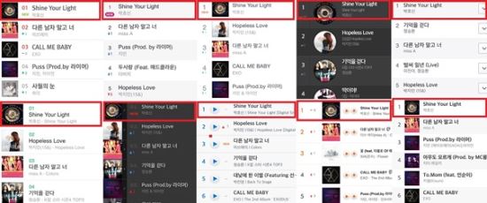6일 0시 공개된 박효신의 새 싱글 샤인 유어 라이트는 공개 직후 각종 국내 음원 사이트 실시간 차트 1위를 모두 휩쓸었다.