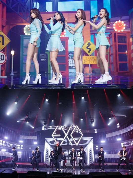 9일 오후 방송되는 Mnet 엠카운트다운에서 두 팀은 유력한 1위 후보에 올랐다. ‘다른 남자 말고 너’로 각종 음원차트 정상 독식 중인 미쓰에이와 음반 판매량에서 절대적 우위를 선점한 엑소의 치열한 승부가 펼쳐질 전망.