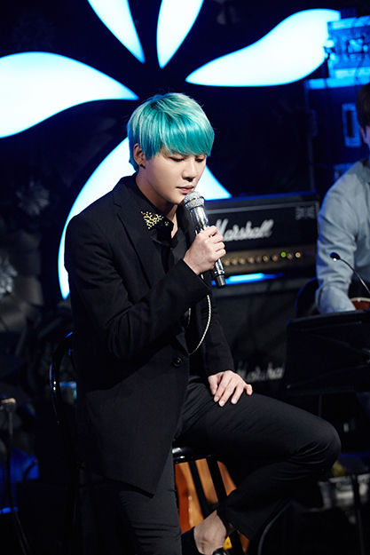 씨제스엔터테인먼트는 13일 오후 공식 SNS를 통해 김준수의 ‘스페이스 공감’ 리허설 사진을 공개했다. 사진 속 김준수는 푸른 머리로 음악에 집중한 모습이다.