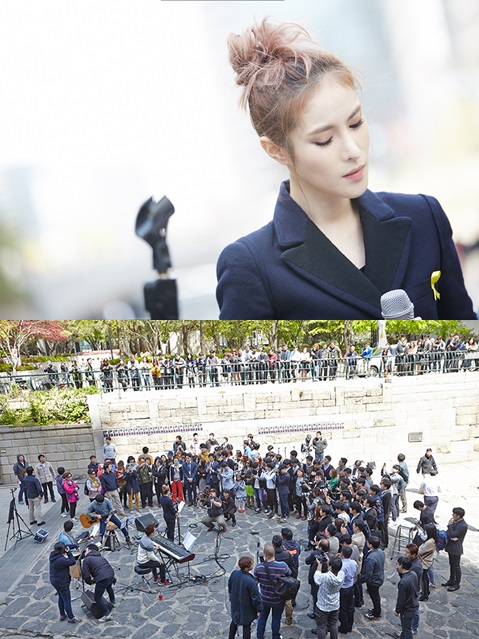 세월호 1주년을 추모하는 마음으로 노란 리본을 단 채 버스킹 무대에 오른 거미는 “데뷔 13년차인데 이렇게 길거리에서 공연을 가지는 것 자체가 처음”이라며 떨리는 마음으로 인사를 건넸다. 이어 새 앨범 타이틀 곡 ‘해줄 수 없는 일’을 시작으로 ‘친구라도 될 걸 그랬어’ ‘미안해요’ 등으로 시민들의 큰 호응을 받았다.