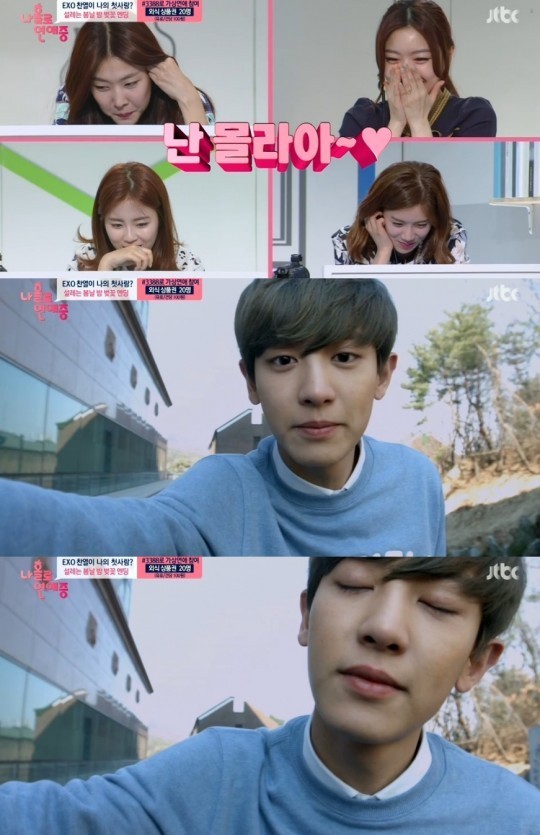 18일 방송된 종합편성채널 JTBC ‘나홀로 연애중’ 12화에서는 지난 방송에 이어 엑소(EXO) 찬열과의 본격 가상 연애가 시작됐다. 가상 남자친구 찬열은 자정이 되자마자 “자냐”라고 문자를 보내 여성 패널들의 마음을 흔드는가 하면, 함께 술을 마시다 넌지시 고백을 건네는 등 설레는 연애 스킬을 선보였다.