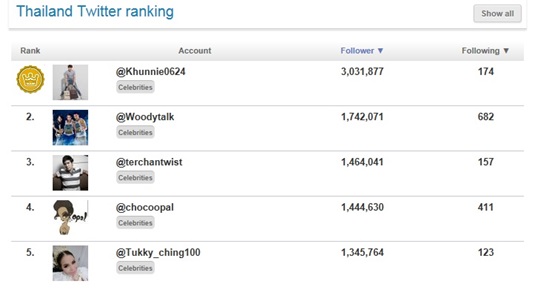 태국 트위터 측의 집계에 따르면, 2PM의 닉쿤은 팔로워 수 300만 이상을 기록, 2위와 2배 가까이 되는 큰 격차를 보이며 ‘태국 트위터 랭킹(Thailand Twitter Ranking)’ 1위 자리를 굳건히 지키고 있다. 또 지난 21일 방콕에서 열린 태국 SNS 시상식 ‘Zocial Awards 2015’에서는 지난 2014년 한 해 태국 트위터에서 멘션이 가장 많이 된 계정으로 그룹 갓세븐(GOT7)의 뱀뱀과 닉쿤이 나란히 1위, 2위를 차지했다.