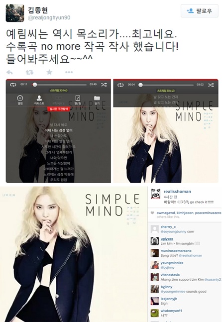 "[쿠키뉴스=이은지 기자] 그룹 샤이니의 종현, 래퍼 빈지노가 가수 김예림의 새 앨범 ‘심플 마인드(Simple Mind)’의 홍보에 나섰다.