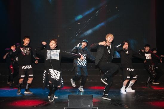 13일 오후 몬스타엑스는 서울 합정동 롯데카드아트센터에서 데뷔 기념 공연을 열고 취재진들과 만났다. 이날 진행을 맡은 씨스타 소유는 몬스타엑스를 칭찬하며 “남성적인 매력도 있지만 몬스타엑스는 실제로는 굉장히 귀엽다. 화장을 지우면 아기 같고 애교도 잘 부린다”고 말했다. 이어 소유가 멤버 주헌에게 애교를 선보여 달라고 요청하자 주헌은 “여기서 애교를 선보이게 될 줄은 몰랐다”며 일어났다.