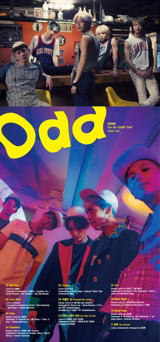SM측은 14일 오전 공식 홈페이지 등을 통해 샤이니의 정규 4집 앨범 ‘오드(Odd)’의 트랙리스트와 이미지를 공개했다. ‘오드’는 타이틀곡 ‘뷰(View)’를 비롯해 샤이니 음악의 진수를 보여주는 11곡으로 구성됐다. 세계 최정상급 프로듀싱팀 스테레오타입스(Stereotypes)와 더언더독스(The Underdogs), 영국의 작곡가팀 런던 노이즈(LDN Noise)등 국내외 히트메이커들이 대거 참여해 샤이니와 호흡했다.