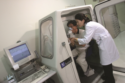 황용일 교수는 “COPD의 증상은 수년에 걸쳐서 서서히 진행한다. 폐기능이 50% 이상 손상돼야 증상을 자각하기 때문에 진단이 늦어지기 쉽다. 아직 호흡곤란은 없더라도 기침, 가래 등의 증상이 있다면 검진을 받아야 하고 COPD는 가슴 X-ray와 폐기능 검사로 비교적 간단하게 진단이 가능하다”고 말했다. kubee08@kukimedia.co.kr