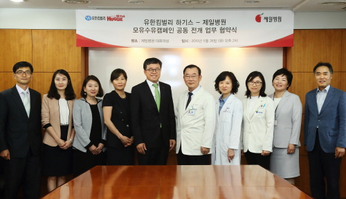 유한킴벌리 하기스와 제일병원은 지난 26일 오후 2시 서울 충무로에 위치한 제일병원 대회의실에서 '행복한 엄마와 아기를 위한 모유수유캠페인' 업무협력을 체결했다.