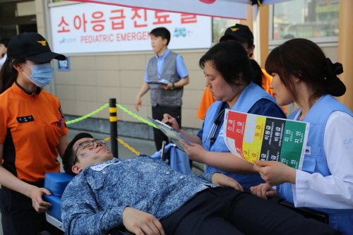 제일 먼저 실시한 대응훈련은 병원 인근에 위치한 흑석역의 화재사고를 가정해 신속한 환자 이송과 화상 등 외상피해를 입은 환자의 응급조치 시스템을 관리하고 점검했다.