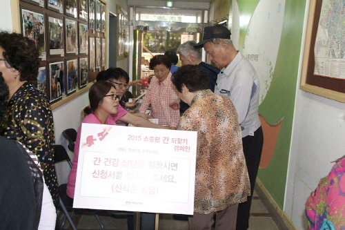 소중한 간 되찾기 캠페인은 지난달 29일 부산에서 시작했다. 대한간학회 소속 의사들은 부산 사하구사회복지관을 찾아 사전에 채혈검사를 진행한 독거노인 56여명과 저소득계층 50여명을 대상으로 검사결과 상담과 교육을 진행했다.