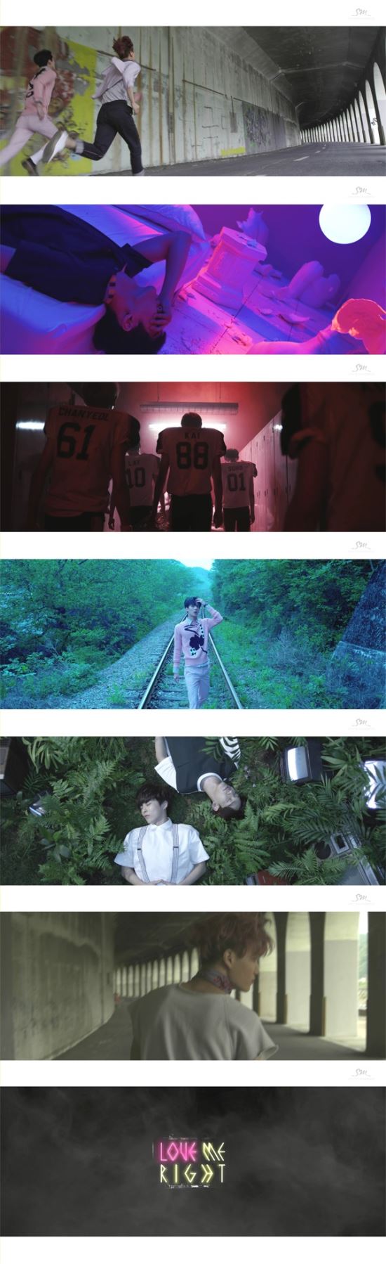 엑소가 2일 자정 공식 SNS 채널을 통해 정규 2집 리패키지 앨범의 티저 영상을 공개했다. 앨범과 동명의 타이틀곡 ‘러브 미 라잇(LOVE ME RIGHT) 티저 영상 속 엑소 멤버들은 미식축구를 콘셉트로 경기장에 등장해 관객들의 함성을 받는가 하면 철길에서 헤맸다. 초원에 누워 눈을 감거나 탈의실에서 천장을 바라봤다. 서로 조금도 연관이 없어 보이는 내용이다. 또 타이틀곡 영상임에도 불구하고 아이러니하게도 단 1초도 노래가 들어가지 않았다. 펑키한 리듬이 돋보이는 밝은 댄스곡이고, 가사에는 사랑하는 사람과 함께 하는 설렘과 행복을 담았다던 타이틀곡 영상이지만 오히려 으스스하기만 하다. 그럼에도 불구하고 반응은 폭발적이다. 왜일까.