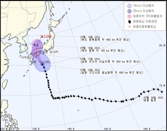 ‘낭카’의 영향으로 바다의 물결은 동해 전해상, 남해동부 전해상, 남해서부 동쪽먼바다, 제주도 전해상에서 1.5∼6.0m로 매우 높게 일겠다.