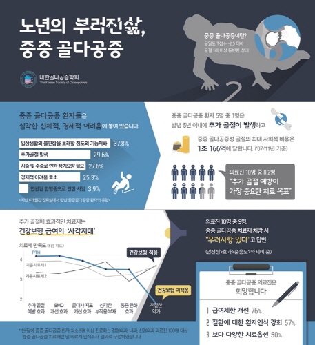 대한골다공증학회는 최근 관련과 의료진 100명을 대상으로 중증 골다공증 치료패턴 및 인식조사를 진행했다.