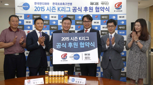 한국먼디파마는 지난 20일 축구회관에서 이종호 사장과 허정무 한국프로축구연맹 부총재가 참석한 가운데 K리그 공식 후원에 대한 계약을 체결했다.
