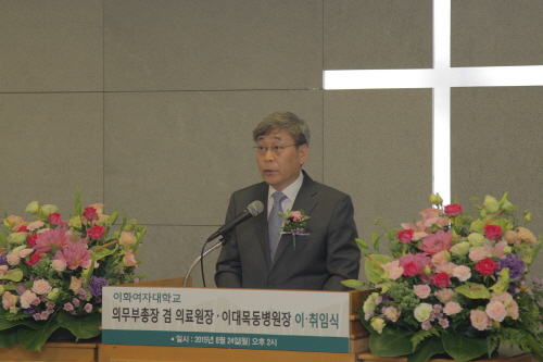 김승철 이화여자대학교 의무부총장 겸 의료원장은 24일 이화의료원에서 열린 취임식에서 이같이 밝혔다. 제2부속병원 성공적 개원을 위한 필요한 모든 지원을 제공하겠다는 입장을 강조했다.