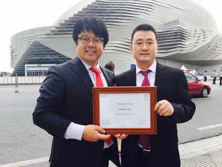 "[쿠키뉴스=송병기 기자] 아벨리노 이진 회장이 9일 중국 대련에서 열리고 있는 세계경제포럼(다보스포럼)의 뉴참피언스 연차총회에서 ‘Avellino Labs’에 대한 기업소개와 Technology Pioneer(기술선도기업) 상을 수상했다.