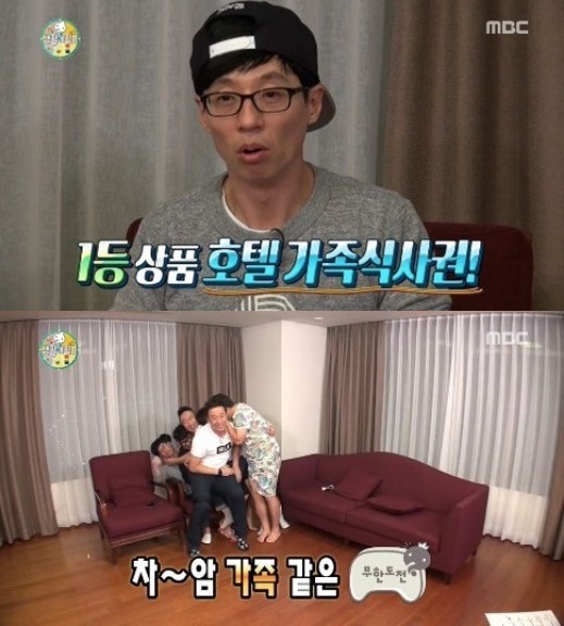 호텔 식사권을 차지한 유재석은 이를 같이 사용할 멤버들을 결정하는 모습을 보여 웃음을 자아냈다.
