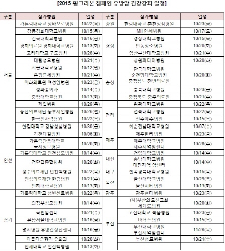 그 중 유방암에 대한 올바른 정보 제공을 위해 대국민 유방암 건강강좌를 전국 66개 병원에서 전개한다.