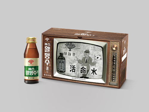 가스활명수 특별박스 디자인은 옛날 브라운관 TV 형태의 외곽 디자인이 특징이다. 이 디자인은 제약업계 최초로 애니메이션 기법을 적용해 제작된 활명수의 1959년 극장 광고를 모티브로 제작됐다.
