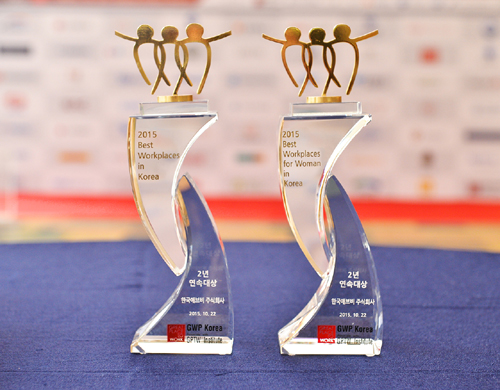 또한 한국애브비의 여성-가족친화기업문화도 좋은 평가를 받았다. 자녀양육 등 일과 생활의 균형을 돕기 위한 '탄력적 근무 제도'와 임신, 출산 직원들을 위한 '엄마의 방' 마련, 출산 전후90일 임금 100% 지급 프로그램 등을 제공하고 있다.