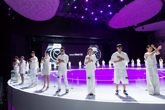 [쿠키뉴스=구현화 기자] 21일(현지시간) 중국 상해에서 열린 '삼성 기어 S2 월드투어' 행사에서 패션 모델들이 '기어 S2'를 선보이고 있다. kuh@kukinews.com