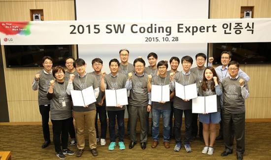 LG전자는 28일 서울 양재동 서초R&D캠퍼스에서 CTO(Chief Technology Officer, 최고기술책임자) 안승권 사장, SW센터장 민경오 수석연구위원(부사장) 등이 참석한 LG전자 소프트웨어 코딩 전문가(Coding Expert) 4기 인증식을 열고 총 13명을 코딩 전문가로 선정했다.