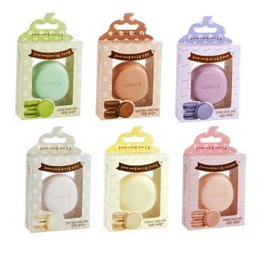 루마카 마카롱 페이스솝은 초콜릿, 코코넛, 블루베리, 그린애플, 스트로베리, 오리지널 등 6가지 다양한 컬러의 마카롱 모양으로 구성됐다. 6종 제품은 각각 화산송이, 월귤추출물, 히알루론산, 솔잎추출물, 살리실산, 달팽이점액추출물 등 이색 성분을 함유하여 피부 타입에 따라 수분 공급, 피부 탄력, 등 다양한 효능을 선택해서 사용할 수 있다.
