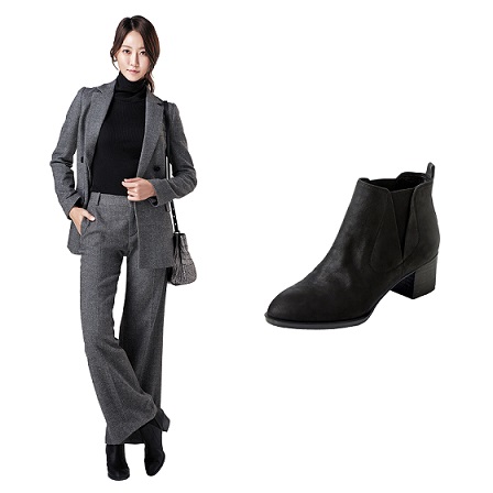 중요한 미팅이나 회의가 예정돼 있다면 '차도녀'(차가운 도시 여자) 느낌을 강조해보자. 앞 코가 날렵하게 빠진 블랙 컬러의 첼시 부츠는 커리어 우먼의 시크함과 당당함을 표현해 준다. 특히 펌프스처럼 코디하기 쉬운 미들 굽과 사이드에 밴딩 처리 된 첼시 부츠는 편안함과 활동성까지 높여준다.