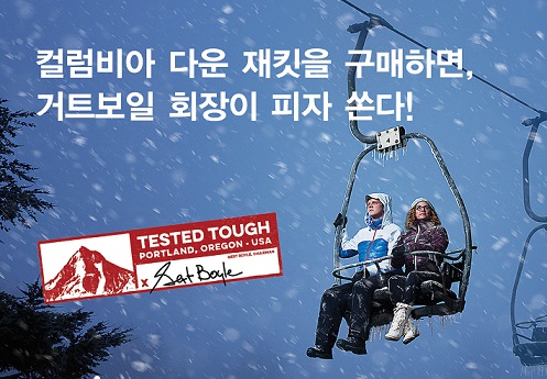 이 행사는 컬럼비아의 새로운 브랜드 캠페인 ‘테스티드 터프(TESTED TOUGH)’ 영상에서 실제 회사 창업주인 거트보일(Gert Boyle) 회장이 등장해 제품 테스트 중인 직원들에게 피자를 주며 테스트를 독려하는 재치 있는 장면에서 착안했다. ‘테스티드 터프’는 제품 개발부터 테스트까지 컬럼비아 전 직원이 완벽을 기한다는 브랜드 철학을 담고 있는 새로운 캠페인이다.