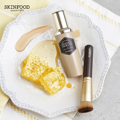 스킨푸드 ‘프로폴리스 세럼 인 파운데이션 SPF45 PA+++(2만8000원/45g/2호수)’은 프로폴리스추출물과 보습 성분을 함유한 신개념 파운데이션 제품이다. 건조한 날씨와 찬 바람 등으로 지친 피부를 보호해 주고 피부 속부터 차오르는 자연스러운 광채를 연출해준다.