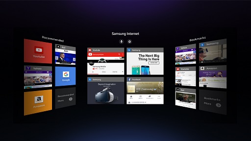기어 VR용 삼성 인터넷은 음성 입력과 스크린 키보드를 지원해 쉽고 직관적으로 사용할 수 있으며, 손으로 조작하지 않고 메뉴를 응시하는 것만으로 원하는 항목을 선택할 수 있는 게이즈 모드(Gaze Mode)도 지원한다.