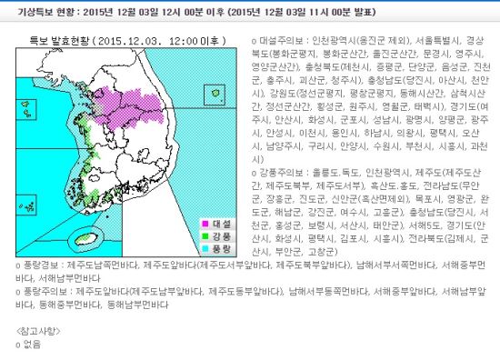 기상청에 따르면 3일 오전 7시10분을 기해 서울과 경기 구리시·남양주시·하남시, 경북 문경시·영주시·봉화군에 대설주의보가 내려졌다.
