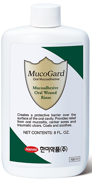 무향무취의 가글제인 뮤코가드는 암 환자 치료시 빈번하게 발생하는 입 안 염증을 가글로써 치료·예방에 사용하는 의료기기이다.