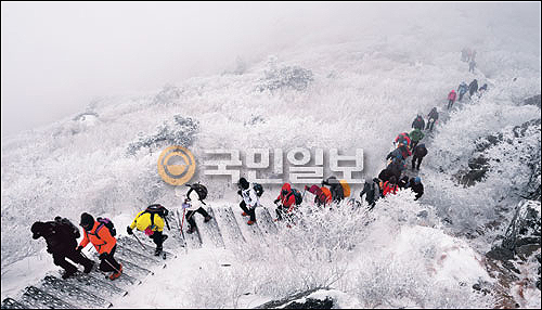 [쿠키뉴스=박주호 기자] 겨울산의 매력은 뭐니뭐니해도 하얗게 핀 눈꽃일 텐데요. 눈꽃에 한 번 빠지면 다른 꽃은 눈에 들어오지도 않는다고 말하는 사람이 있을 정돕니다.