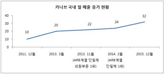 보령제약은 자사의 고혈압 신약 카나브가 지난해 12월 유비스트 기준으로 월 매출 32억원을 기록했다고 18일 밝혔다. 지난 2013년 3월 20억원을 돌파 한 후 약 1년 9개월 만이다.