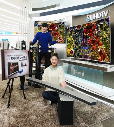 이벤트 대상 TV 제품은 55형 이상의 SUHD TV(JS9500, JS9000, JS8500, JS7200)와 UHD TV(JU7500, JU7000, JU6900)이며, 커브드 TV는 커브드 사운드바(HW-J6001) 제품을, 평면 TV는 평면 사운드바(HW-J551) 제품을 각각 패키지로 구성했다.