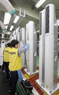 "[쿠키뉴스=구현화 기자] LG전자가 경남 창원 소재 에어컨 생산라인을 쉴 틈 없이 가동하고 있다고 1일 밝혔다. 올해 신제품인 ‘휘센 듀얼 에어컨’을 예약주문한 고객들에게 설 연휴 직후부터 배송하기 위해서다. 연초부터 전국 판매점에 전시할 신제품을 생산해 왔고, 최근에는 고객 배송을 위한 제품 생산에 들어갔다.
