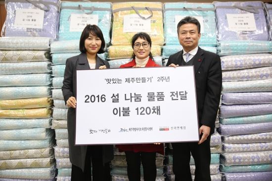 '맛있는 제주만들기' 식당주인들은 주변의 소외이웃들이 따뜻한 겨울을 보내시길 바라는 마음으로 이불을 마련했으며, 제주도자원봉사센터는 제주지역 내 독거어르신과 재가장애인 등 120가정을 대상으로 설 명절 전에 전달할 예정이다.