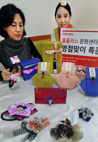 [쿠키뉴스=구현화 기자] 홈플러스는 설을 앞두고 7일까지 전국 각 지점 홈플러스 문화센터에서 설에 어울리는 선물과 소품 만들기, 설 전통 체험강좌 등 총 100여개의 명절 맞이 특별강좌를 선보인다.