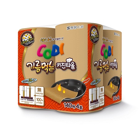 쌍용C&B ‘코디 기름먹는 키친타올’은 구성 섬유의 면적 및 흡수공간이 넓은 특수원단을 사용해 자사 일반 키친타올 대비 기름 흡수력을 24% 높인 제품이다.
