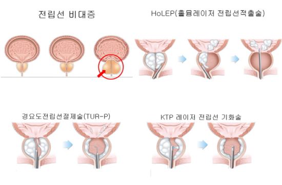 전립선종적출술(HoLEP, 홀렙)은 커진 전립선 부위에 홀륨 레이저를 쏘아 치료한다.