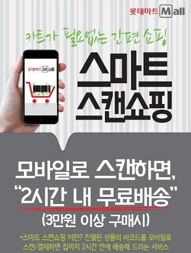 ‘스마트 스캔’이란 매장을 방문해 상품을 직접 보고 롯데마트 모바일 앱(App)으로 상품 바코드를 스캔 후, 장바구니에 모인 상품을 모바일로 결제하면 매장 배송을 통해 집에서 상품을 받아보는 옴니채널(Ommi-Channel) 서비스이다.