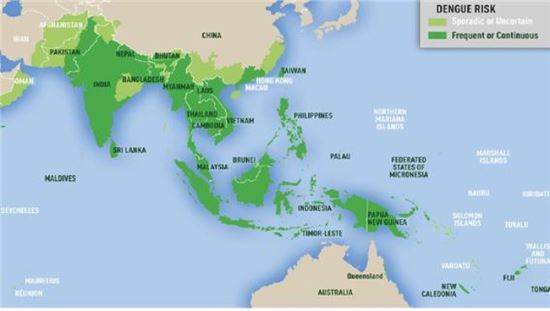 동남아시아는 전세계 뎅기열 발생의 가장 큰 부분을 차지하고 있다. 특히 최근 온난화의 영향으로 환자 발생 규모가 증가하고 있는 상황이다.