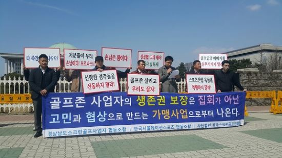 [쿠키뉴스=구현화 기자] 23일 경남을 중심으로 한 골프존 사업자 단체(경상남도 스크린골프사업자 협동조합, 한국시뮬레이션스포츠 협동조합, 사단법인 한국스크린골프연합회)가 23일 골프존에 대한 과열적 시위를 진행하고 있는 전국골프존사업자 협동조합을 규탄하고 나섰다.
