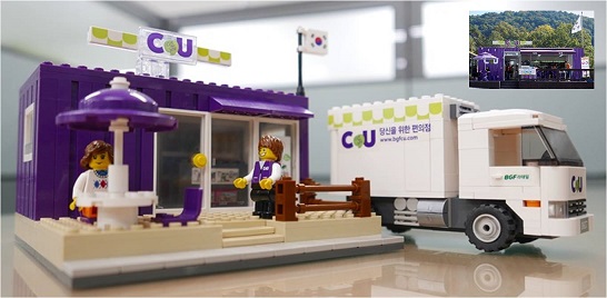 내 맘 속의CU는 CU(씨유)의 대표 PB상품부터 스태프 유니폼까지 충실하게 표현했다. 컨테이너 점포의 특징을 담은 컴팩트한 사이즈의 보라색 점포에 파라솔 테이블, 피규어 2개, 소형 배송차 등으로 구성됐다. 3,000개 한정 수량으로 판매된다. kuh@kukinews.com