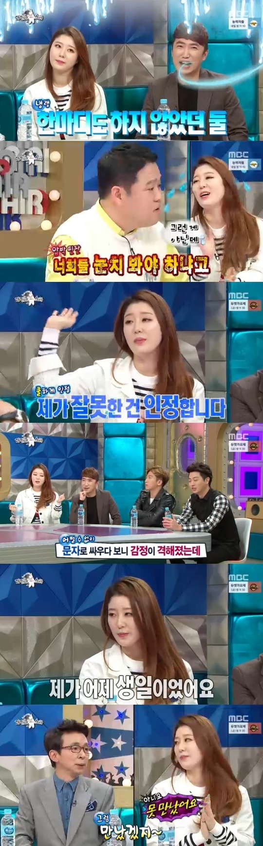 나비는 “방송이 있으면 풀고 와야 하는데 그러지 못했다”며 “내가 잘못한 것은 인정한다. 먼저 잘못을 했다”고 싸운 계기를 털어놨다. 나비는 “잘못을 했는데 5일 동안 만날 수 없었다. 문자로 싸우다 보니까 감정만 격해졌다”며 “내가 어제 생일이었다. 근데 못 만났다. 파티도 열지 않았고 작은 케이크조차 안 해주더라. 난 가족들과 보냈다”고 밝혔다. 이어 “근데 지난해 생일도 안 챙겨줬다. 스케줄이 있어서 못 만났다”고 섭섭함을 토로했다.