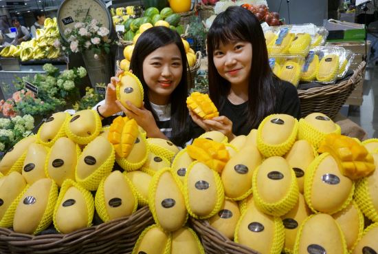 [쿠키뉴스=구현화 기자] 현대백화점은 16일 무역센터점에서 가장 달콤한 망고로 기네스북에 등재된 카라바오 망고의 원산지인 필리핀 기마라스 섬에서 생산된 '기마라스 섬 망고'를 국내 최초로 선보인다.
