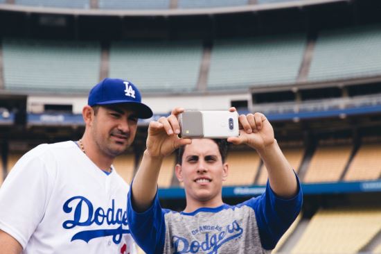 LG전자는 이날 경기장 전광판에 ‘G5와 프렌즈’ 영상을 깜짝 공개했다. 이 영상에는 LA 다저스의 간판 타자이자 현존 최고의 1루수로 알려진 ‘애드리언 곤잘레스’가 등장했다. 이 영상은 ‘애드리언 곤잘레스’와 열혈 야구팬이 ‘G5와 프렌즈’로 야구를 색다르게 즐기는 이야기를 담았다. 이 영상에서 야구팬은 ‘G5’의 광각카메라, ‘캠 플러스’, ‘360 캠’으로 경기를 촬영한다. 선수와 팬이 ‘G5’의 ‘오토 셀피’ 기능으로 셔터를 누르지 않고 셀피를 찍는 장면 등이 영상에 담겨있다. kuh@kukinews.com
