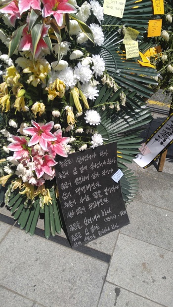 [쿠키뉴스=구현화 기자] 21일 오후 5시쯤 서울 강남역 10번 출구 앞에 시민 400여명이 모였다. 자발적으로 모인 이들은 하얀 국화를 들고 마스크를 쓰고 있었다. 이들은 사고 현장 주변을 침묵한 채 1시간30분가량 행진했다.