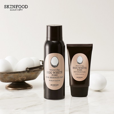 새롭게 출시된 스킨푸드 ‘에그 화이트 포어 라인’ 추가 2종은 ‘에그 화이트 포어 핫 스팀 팩’과 ‘에그 화이트 포어 쿨 머랭 팩’으로 구성됐다. 달걀흰자추출물, 유황, 온천수, 화산송이, 화이트 클레이 성분이 블랙헤드 및 각질 제거, 모공 수렴, 피지 흡착 등에 도움을 주어 마치 유황 온천에서 스파를 즐기고 나온 것처럼 부드러운 피부를 완성시켜준다.