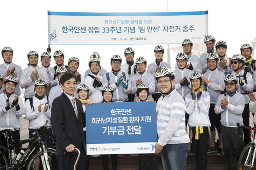 한국얀센 임직원 50명이 자전거로 경인 아라뱃길 왕복 42㎞의 코스를 약 세 시간에 거쳐 완주했다. 주행거리 1㎞ 마다 일정 금액을 적립해 한국희귀난치성질환연합회에 전달했다. 전달된 기부금은 전액 희귀㎞난치질환 환자 지원에 사용된다.